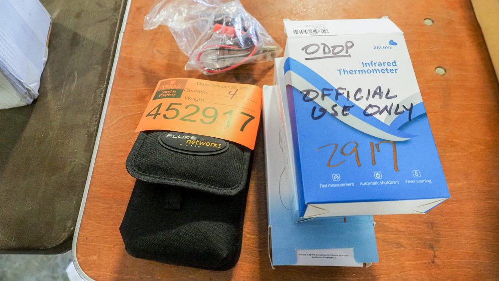 Infrared thermometers and fluke network testers Includes 3 infrared Human thermometers Plus Fluke Networks Intellaone Pro 200 *The University of Texas at Austin makes no claim of physical or mechanical condition, and functionality of items available through SWICO Auctions. All items are sold “As is, where is”. It is the sole responsibility of the bidder to physically inspect items before bidding and assume all risk. Photos and descriptions are for preview only. All sales are final and no refunds will be issued. Please refer to the SWICO “Terms of Service” in which you have agreed to.