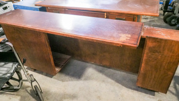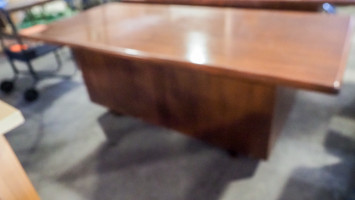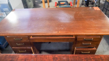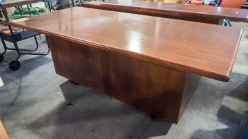 Is a two-piece desk set Main desk is 36 x 77 inches Has 8 drawers and 2 slide outs Also includes a 19 x 72 inch custom built Return *The University of Texas at Austin makes no claim of physical or mechanical condition, and functionality of items available through SWICO Auctions. All items are sold “As is, where is”. It is the sole responsibility of the bidder to physically inspect items before bidding and assume all risk. Photos and descriptions are for preview only. All sales are final and no refunds will be issued. Please refer to the SWICO “Terms of Service” in which you have agreed to.