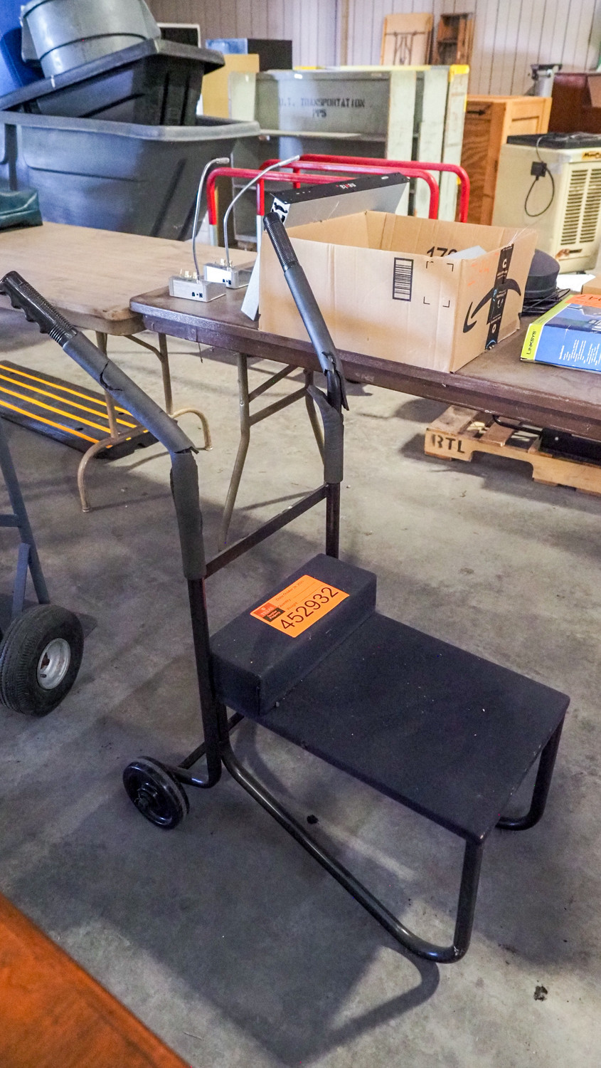 two wheel stack chair dolly *The University of Texas at Austin makes no claim of physical or mechanical condition, and functionality of items available through SWICO Auctions. All items are sold “As is, where is”. It is the sole responsibility of the bidder to physically inspect items before bidding and assume all risk. Photos and descriptions are for preview only. All sales are final and no refunds will be issued. Please refer to the SWICO “Terms of Service” in which you have agreed to.