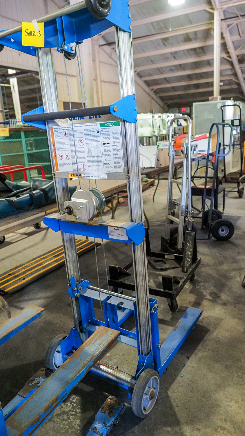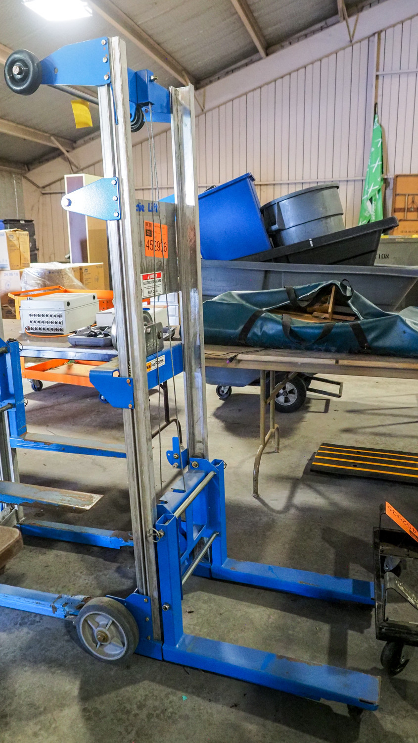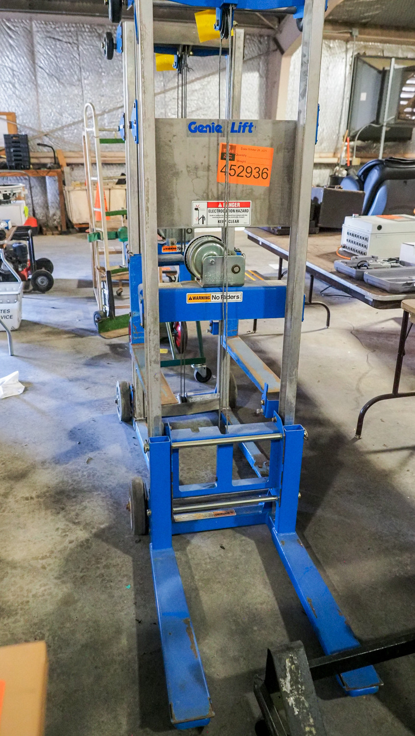 Genie lift 500 pound Lift Condition:condition is missing the hand crank *The University of Texas at Austin makes no claim of physical or mechanical condition, and functionality of items available through SWICO Auctions. All items are sold “As is, where is”. It is the sole responsibility of the bidder to physically inspect items before bidding and assume all risk. Photos and descriptions are for preview only. All sales are final and no refunds will be issued. Please refer to the SWICO “Terms of Service” in which you have agreed to.