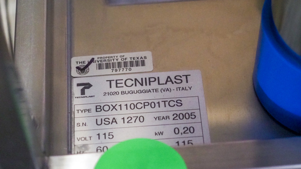 Tecniplast slim touch technolast blower, type: BOX 110 CP01 TCS, Built in 2005, 115 volt Condition:Condition unknown, but looks in good shape *The University of Texas at Austin makes no claim of physical or mechanical condition, and functionality of items available through SWICO Auctions. All items are sold “As is, where is”. It is the sole responsibility of the bidder to physically inspect items before bidding and assume all risk. Photos and descriptions are for preview only. All sales are final and no refunds will be issued. Please refer to the SWICO “Terms of Service” in which you have agreed to.