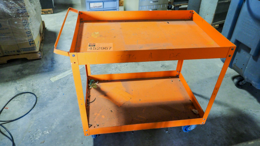 orange shop cart Measures 24 x 36 x 32 inches *The University of Texas at Austin makes no claim of physical or mechanical condition, and functionality of items available through SWICO Auctions. All items are sold “As is, where is”. It is the sole responsibility of the bidder to physically inspect items before bidding and assume all risk. Photos and descriptions are for preview only. All sales are final and no refunds will be issued. Please refer to the SWICO “Terms of Service” in which you have agreed to.
