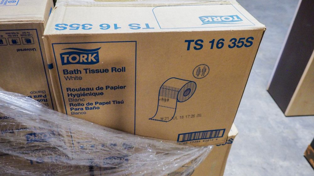 pallet of Tork TS 1635 S Bath tissue rolls (#452969) University Of Texas At Austin