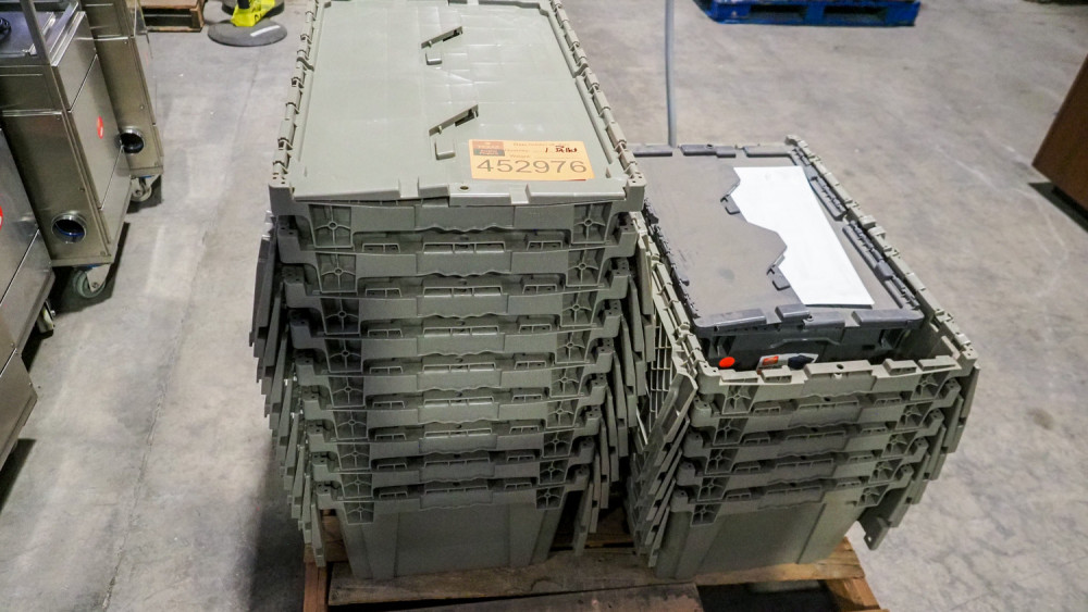 Is 15 plastic totes *The University of Texas at Austin makes no claim of physical or mechanical condition, and functionality of items available through SWICO Auctions. All items are sold “As is, where is”. It is the sole responsibility of the bidder to physically inspect items before bidding and assume all risk. Photos and descriptions are for preview only. All sales are final and no refunds will be issued. Please refer to the SWICO “Terms of Service” in which you have agreed to.
