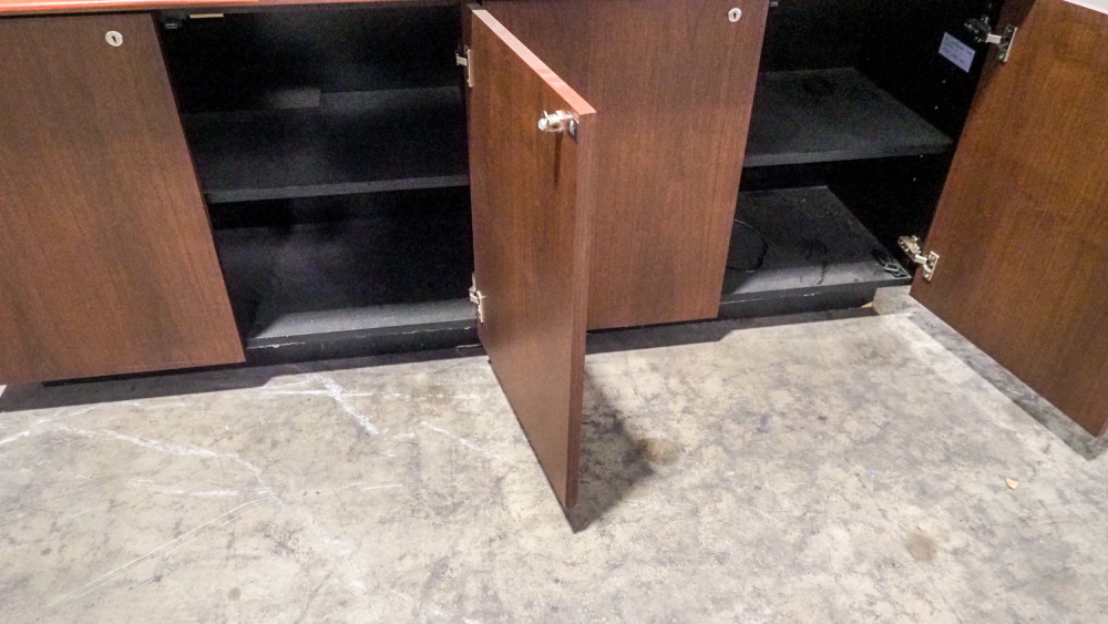 is a Wood Credenza unit Measures 22 x 72 inches Has 4 doors With Keys *The University of Texas at Austin makes no claim of physical or mechanical condition, and functionality of items available through SWICO Auctions. All items are sold “As is, where is”. It is the sole responsibility of the bidder to physically inspect items before bidding and assume all risk. Photos and descriptions are for preview only. All sales are final and no refunds will be issued. Please refer to the SWICO “Terms of Service” in which you have agreed to.