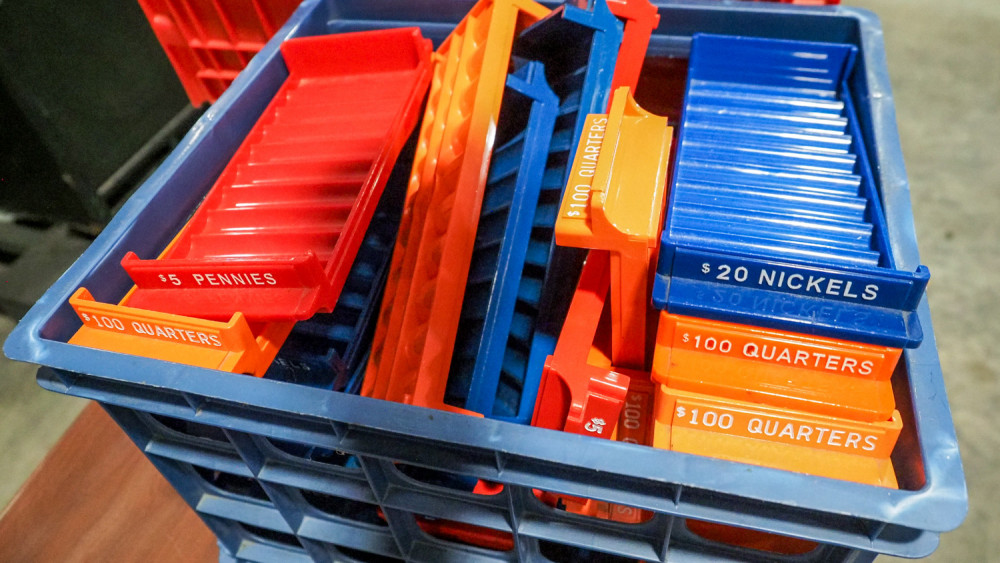 two totes of Change organizers For pennies, nickels, quarters In dimes *The University of Texas at Austin makes no claim of physical or mechanical condition, and functionality of items available through SWICO Auctions. All items are sold “As is, where is”. It is the sole responsibility of the bidder to physically inspect items before bidding and assume all risk. Photos and descriptions are for preview only. All sales are final and no refunds will be issued. Please refer to the SWICO “Terms of Service” in which you have agreed to.
