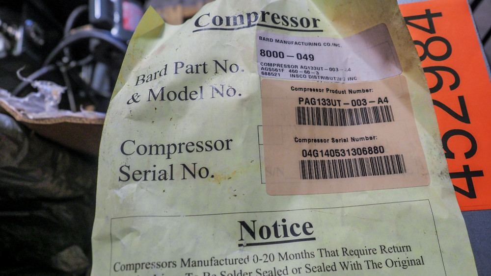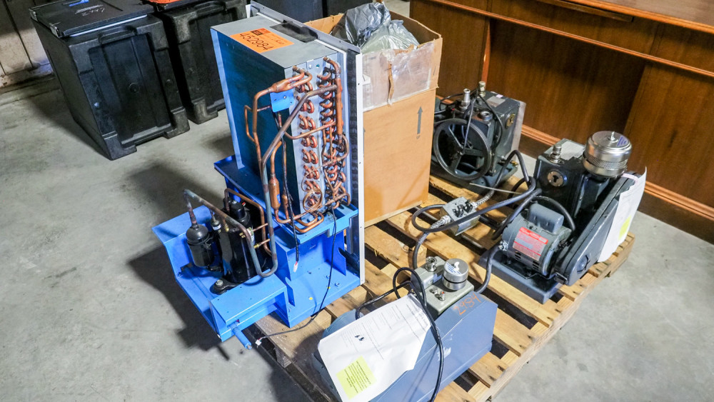 pallet of vacuum pumps and more Includes: 3 Welch duo-seal vacuum pumps, Bard manufacturing Compressor model PAG 133 UT 003-A4 And another condensing coil *The University of Texas at Austin makes no claim of physical or mechanical condition, and functionality of items available through SWICO Auctions. All items are sold “As is, where is”. It is the sole responsibility of the bidder to physically inspect items before bidding and assume all risk. Photos and descriptions are for preview only. All sales are final and no refunds will be issued. Please refer to the SWICO “Terms of Service” in which you have agreed to.