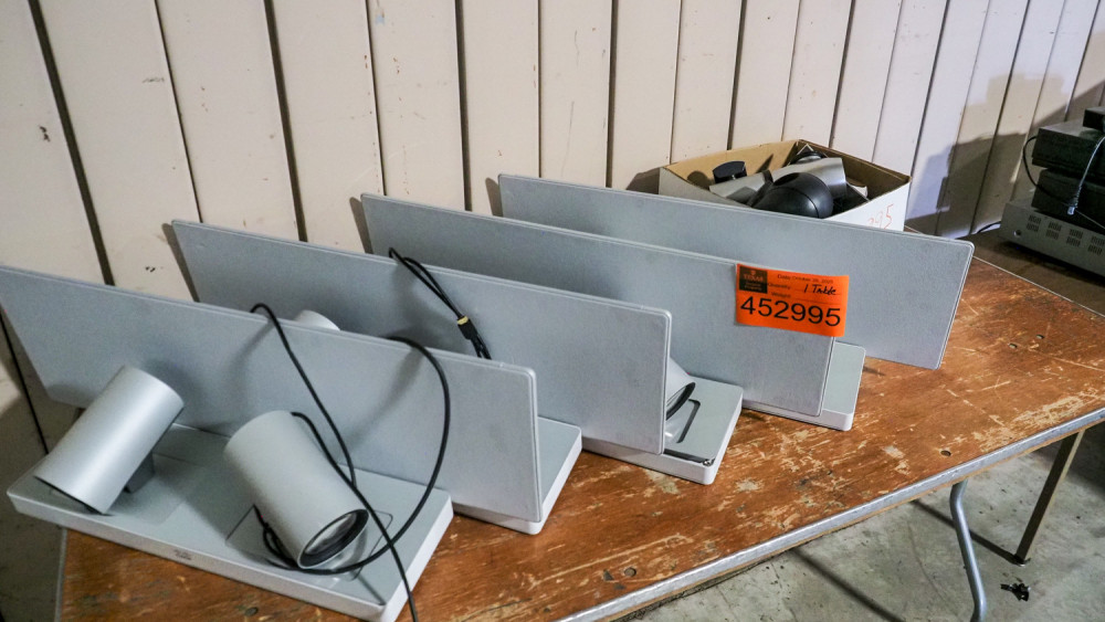 table of video conference cameras Including Cisco Part number 68-100233-01 H0 plus Dual camera setups, Polycom cameras, Sony PTZ camera, Lifesize PTZ camera and more Condition:Unknown *The University of Texas at Austin makes no claim of physical or mechanical condition, and functionality of items available through SWICO Auctions. All items are sold “As is, where is”. It is the sole responsibility of the bidder to physically inspect items before bidding and assume all risk. Photos and descriptions are for preview only. All sales are final and no refunds will be issued. Please refer to the SWICO “Terms of Service” in which you have agreed to.