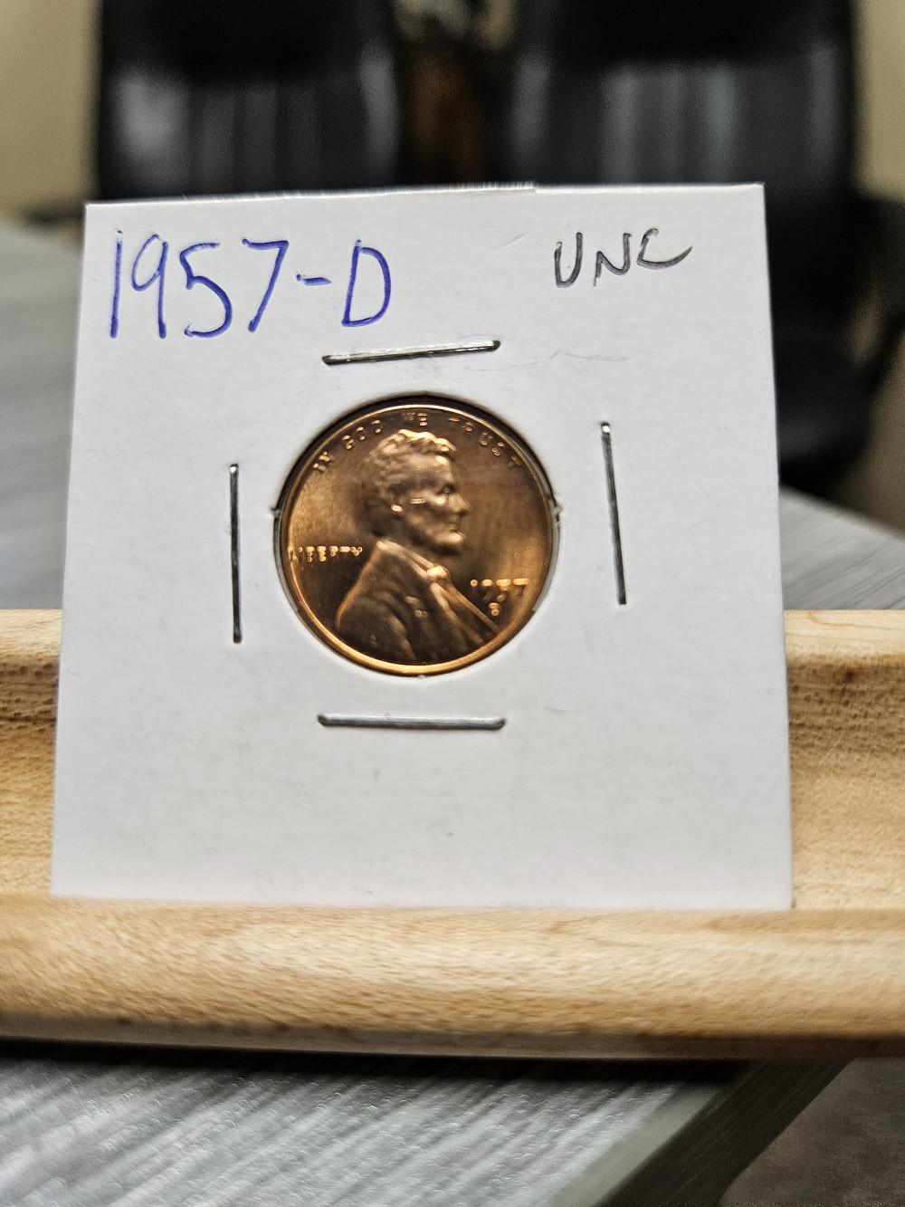 1957 D Uncirculated Wheat Cent Coins & Currency