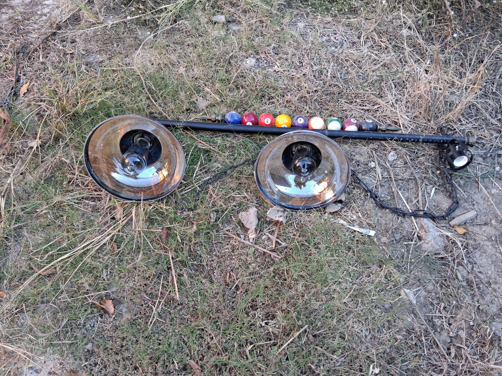 This is a three-light billiard or pool table light fixture. Inventory Reduction Light Fixtures And Electric Components Sports & Recreation