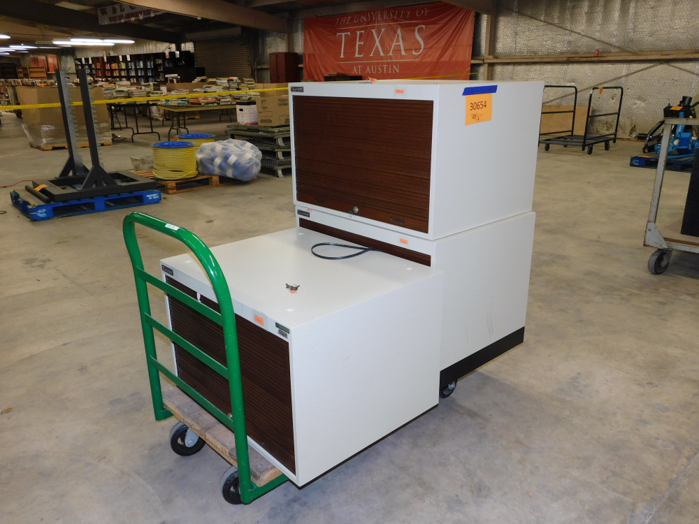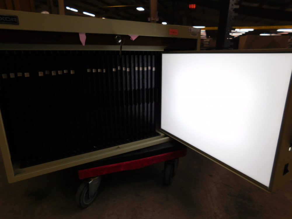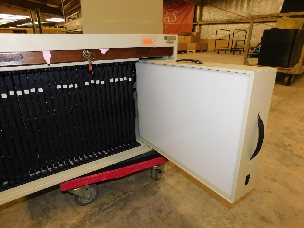 Vintage Luxor Slide Storage Cabinets and Light Source (#30654) University Of Texas At Austin