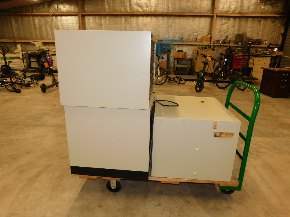 Vintage Luxor Slide Storage Cabinets and Light Source - Light does power on when plugged in. Otherwise, untested and unknown model. All units have keys.
