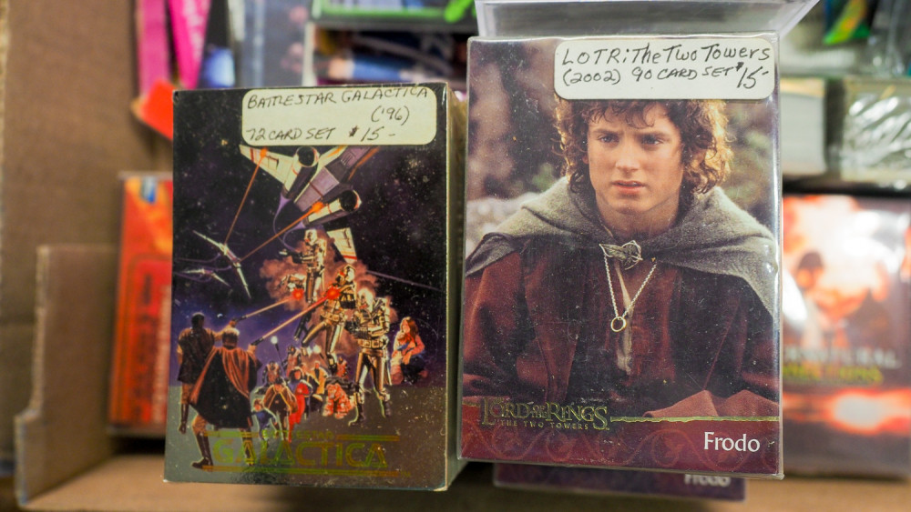 Trading cards from Lord of the Ring, Godzilla, Battlestar Galactic, Indiana Jones, Shrek, Zorro, Terminator, Cat in the Hat, and more.