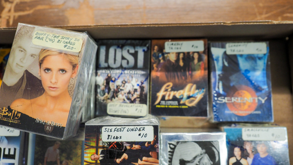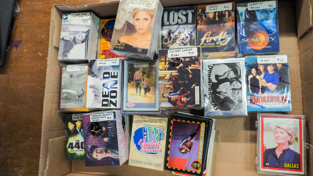 Trading cards from Buffy the Vampire Slayer, Twilight Zone, Dead Zone, Firefly, Dallas, Lost, and more.