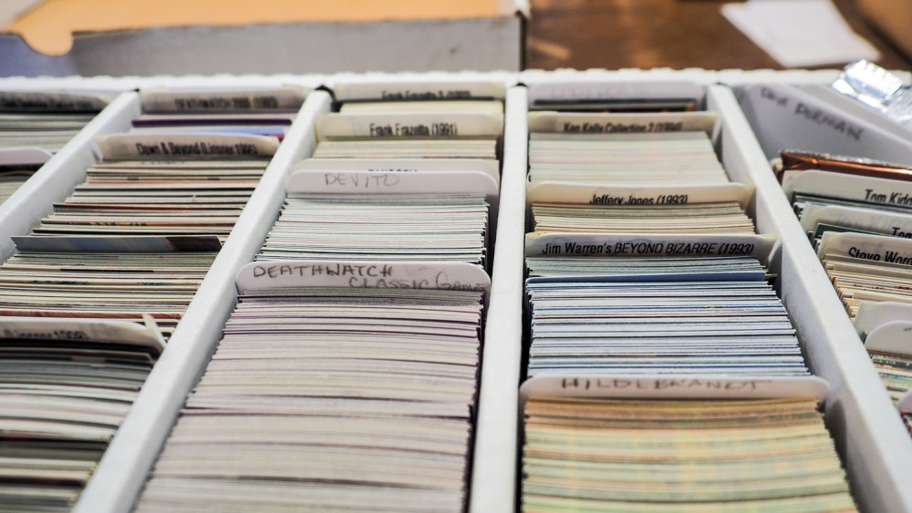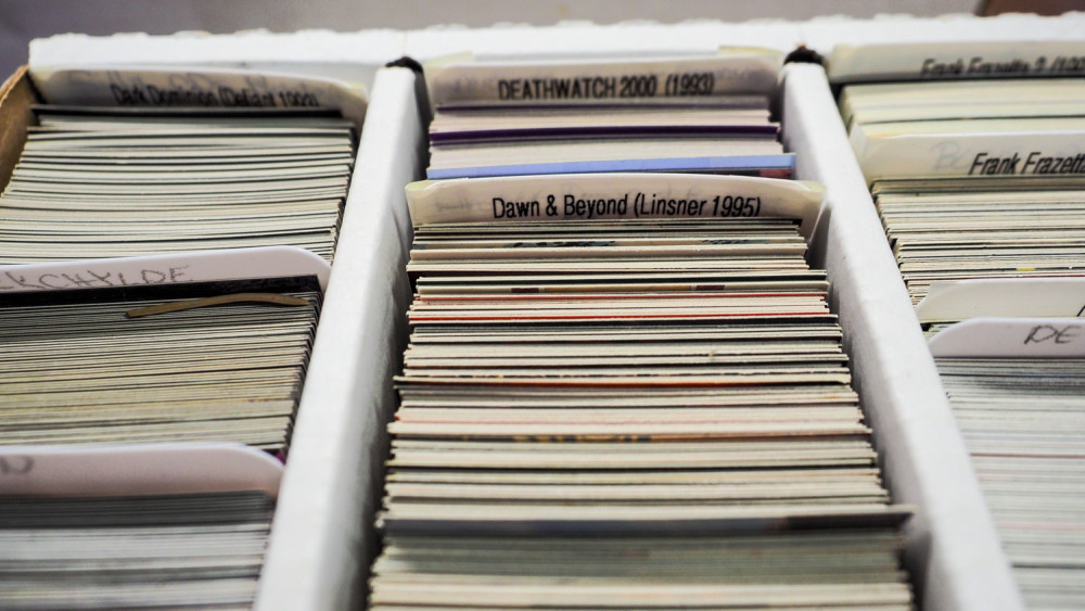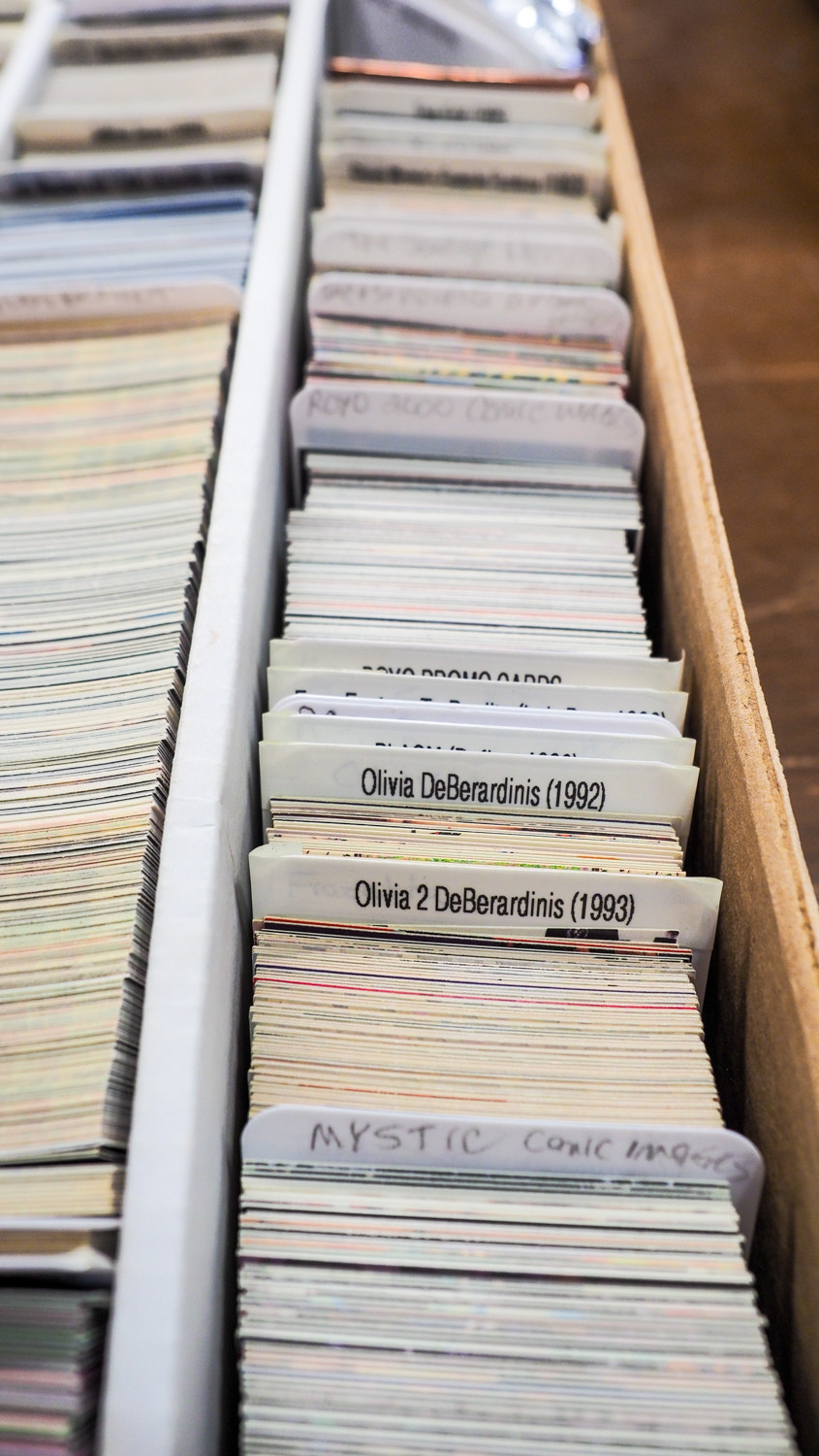 Cards include Mystic Comics, Olivia, Deathwatch, Frank Frazetta,