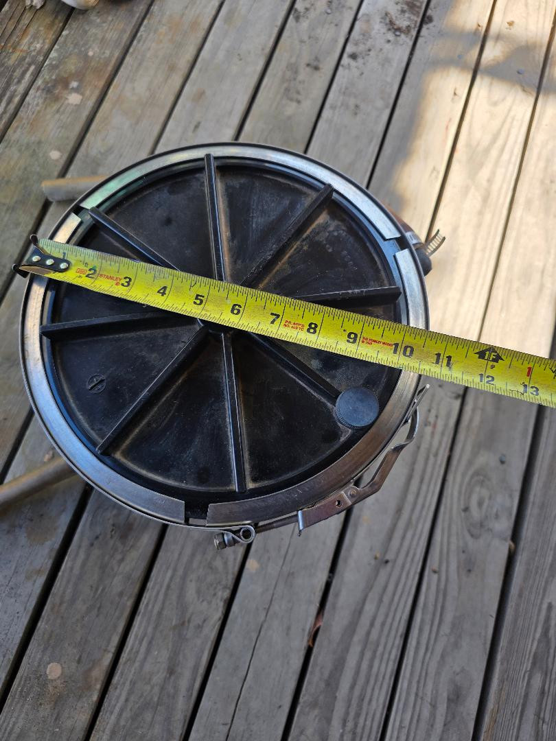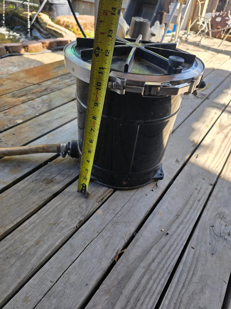 This is a filter that is great for a small koi pond, to help clear the water. It is approximately 11" X 11".
