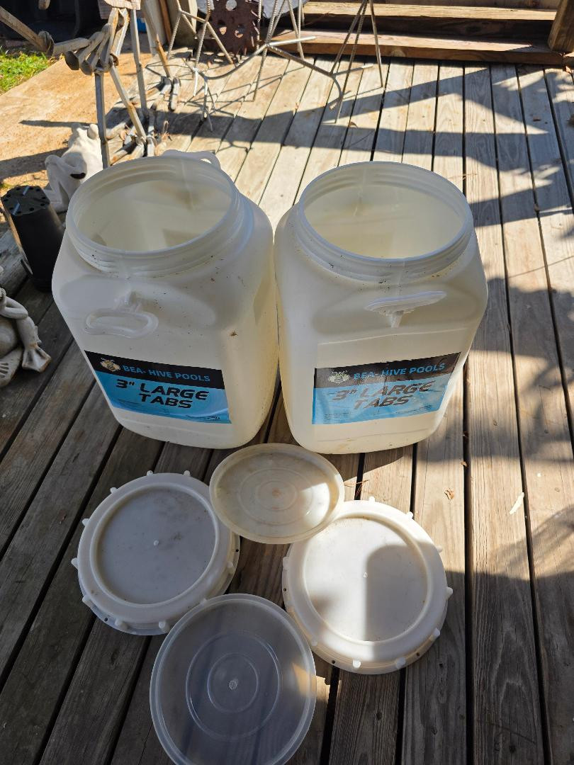 This is a pair of plastic jugs, each holding approximately 5 gallons.
