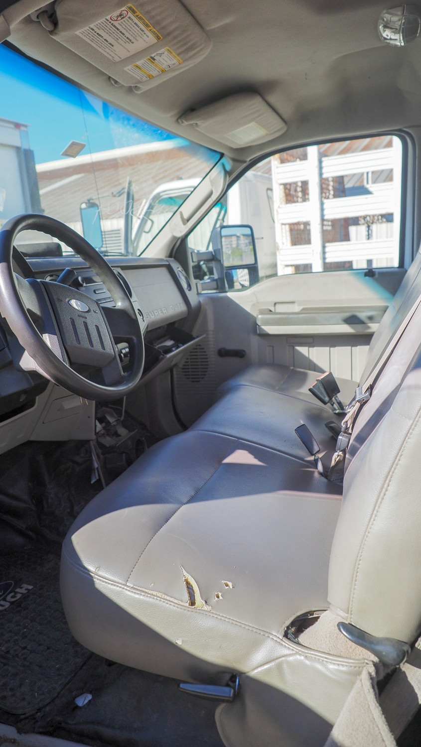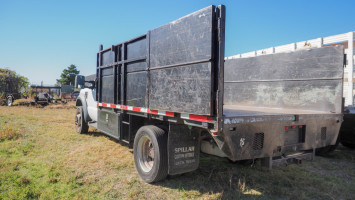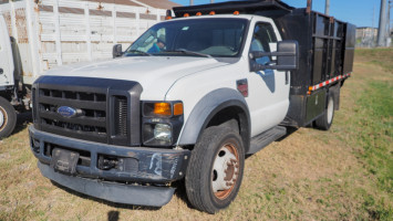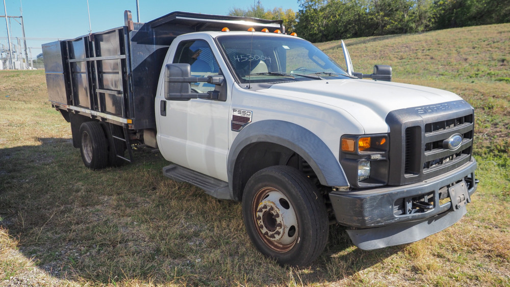 2008 Ford F-550 chassis with approx. 12 ft steel dump bed and removable sides (about 95.5" inside width); electric-over-hydraulic dump; vinyl interior; manual locks and windows; AM/FM radio; A/C; 6.4L PowerStroke diesel; automatic transmission. Condition:Runs and drives; brake system has some kind of failure; damage to front bumper; damage to driver's door; dents and dings all the way around; dump bed is operable *The University of Texas at Austin makes no claim of physical or mechanical condition, and functionality of items available through SWICO Auctions. All items are sold “As is, where is”. It is the sole responsibility of the bidder to physically inspect items before bidding and assume all risk. Photos and descriptions are for preview only. All sales are final and no refunds will be issued. Please refer to the SWICO “Terms of Service” in which you have agreed to.