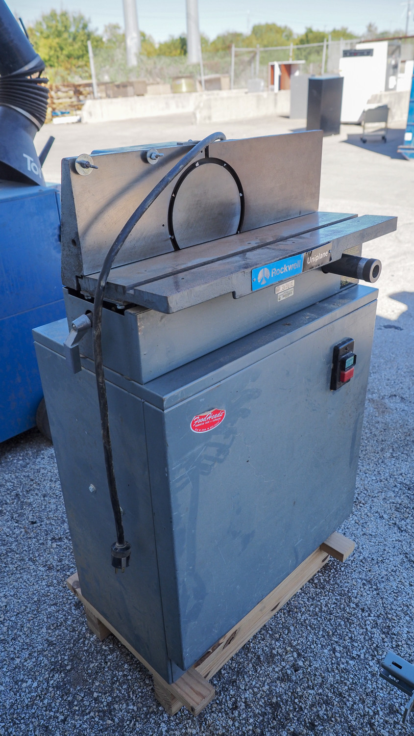 Rockwell Uniplane planer/jointer, 6" cut, series 22-300; approx. ¾ HP 115/230V single-phase motor; appears wired for 115V. Condition:Condition unknown *The University of Texas at Austin makes no claim of physical or mechanical condition, and functionality of items available through SWICO Auctions. All items are sold “As is, where is”. It is the sole responsibility of the bidder to physically inspect items before bidding and assume all risk. Photos and descriptions are for preview only. All sales are final and no refunds will be issued. Please refer to the SWICO “Terms of Service” in which you have agreed to.