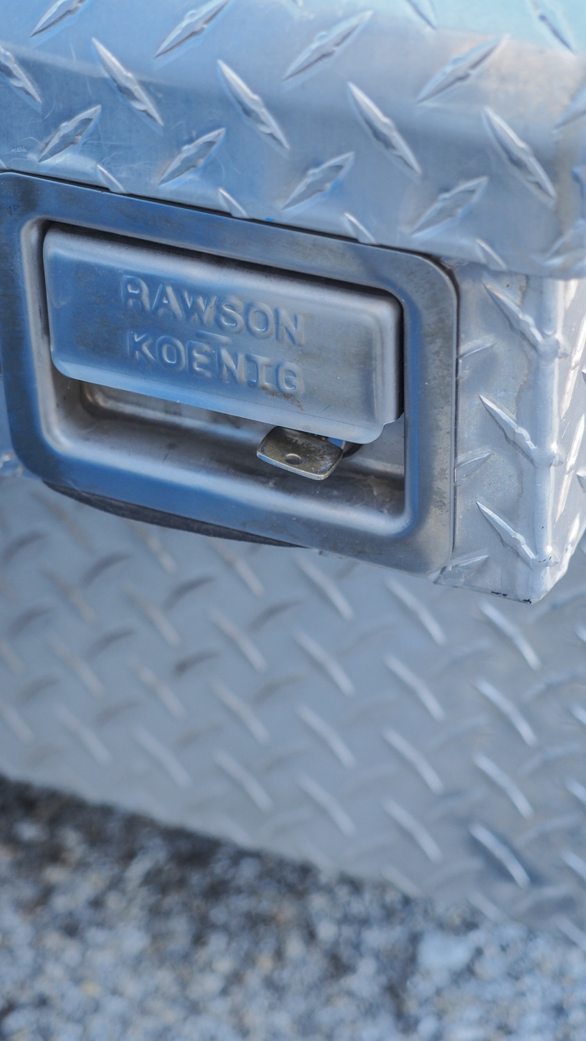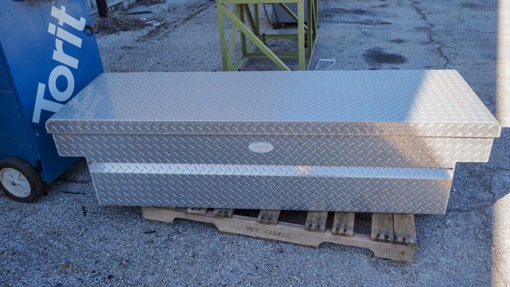Aluminum crossover truck toolbox; approx. 21" x 70" x 18"; includes sliding interior drawer and key. *The University of Texas at Austin makes no claim of physical or mechanical condition, and functionality of items available through SWICO Auctions. All items are sold “As is, where is”. It is the sole responsibility of the bidder to physically inspect items before bidding and assume all risk. Photos and descriptions are for preview only. All sales are final and no refunds will be issued. Please refer to the SWICO “Terms of Service” in which you have agreed to.