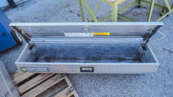 Northern Tool aluminum side-mount truck toolbox; approx. 13" x 48" x 13". *The University of Texas at Austin makes no claim of physical or mechanical condition, and functionality of items available through SWICO Auctions. All items are sold “As is, where is”. It is the sole responsibility of the bidder to physically inspect items before bidding and assume all risk. Photos and descriptions are for preview only. All sales are final and no refunds will be issued. Please refer to the SWICO “Terms of Service” in which you have agreed to.