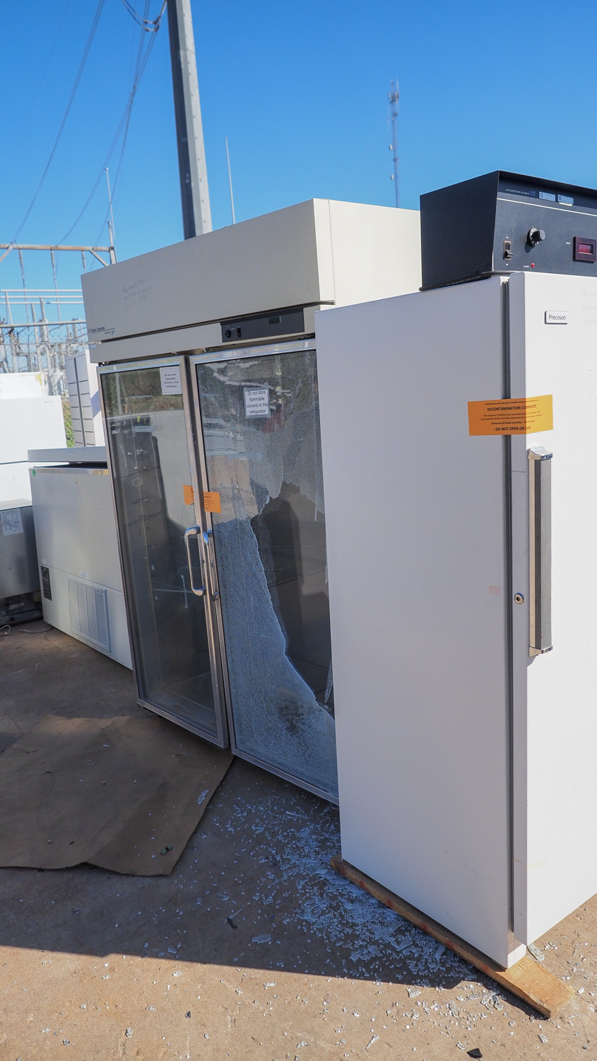 Lot of 12 lab and commercial refrigeration cabinets: includes lab freezers, lab refrigerators, ultra-low-temperature freezers, residential refrigerator/freezers, and under-counter refrigerators. All compressor and refrigerant components removed; cabinets sold for parts, storage, or refit. Condition:All freon and compressor units have been removed *The University of Texas at Austin makes no claim of physical or mechanical condition, and functionality of items available through SWICO Auctions. All items are sold “As is, where is”. It is the sole responsibility of the bidder to physically inspect items before bidding and assume all risk. Photos and descriptions are for preview only. All sales are final and no refunds will be issued. Please refer to the SWICO “Terms of Service” in which you have agreed to.