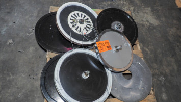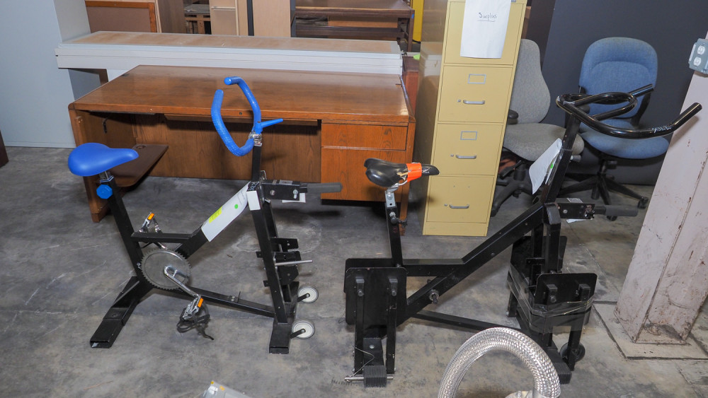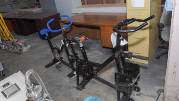 Two commercial exercise bikes plus pallet of spare wheels and parts; models include Life Fitness 95Ri and similar recumbent bikes (as tagged on units). *The University of Texas at Austin makes no claim of physical or mechanical condition, and functionality of items available through SWICO Auctions. All items are sold “As is, where is”. It is the sole responsibility of the bidder to physically inspect items before bidding and assume all risk. Photos and descriptions are for preview only. All sales are final and no refunds will be issued. Please refer to the SWICO “Terms of Service” in which you have agreed to.