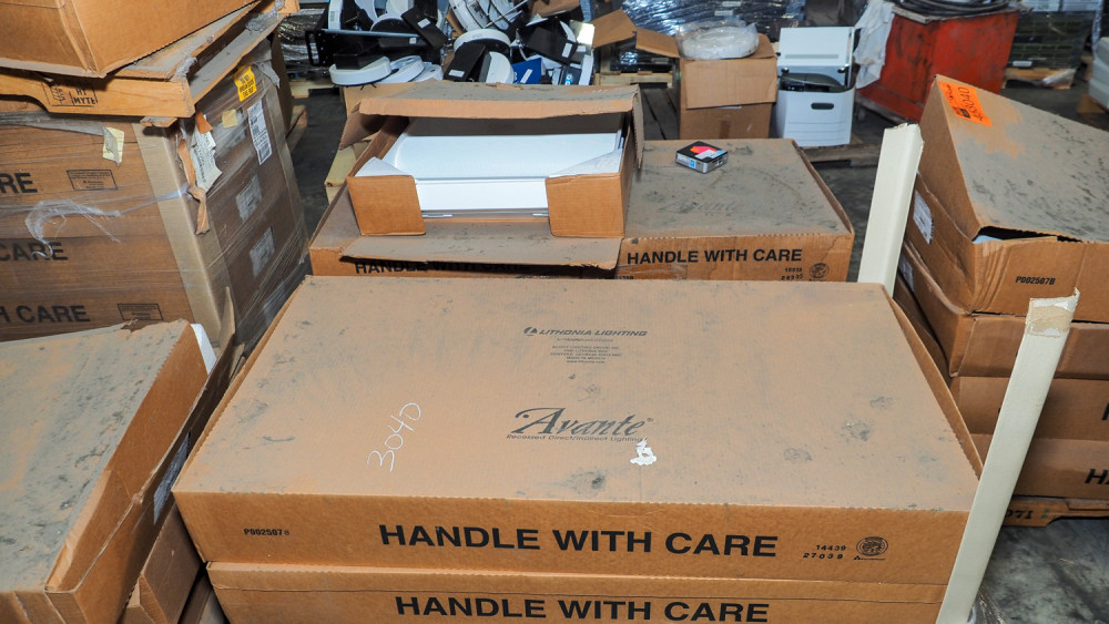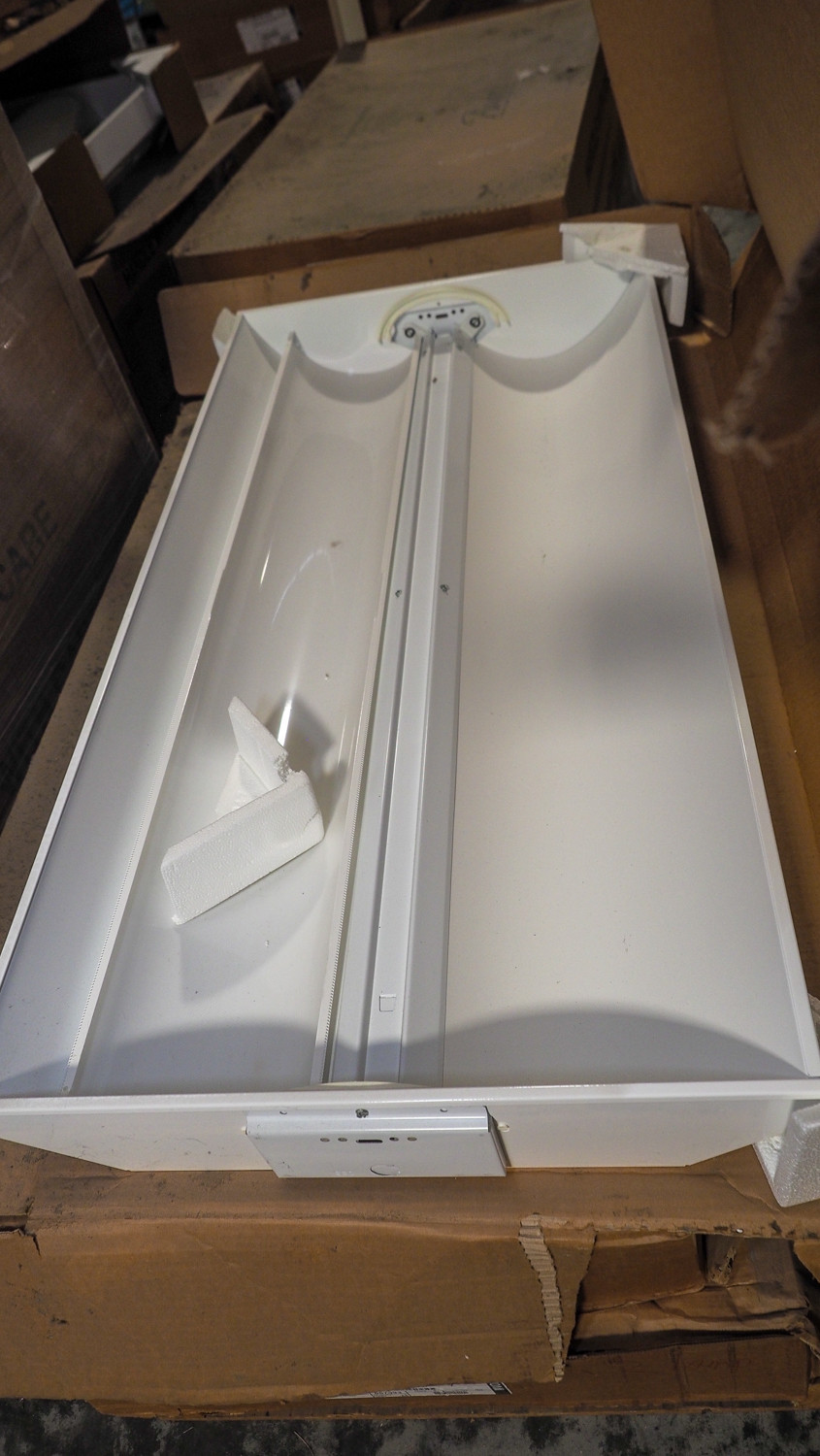 Five pallets of Lithuania Lighting Avante fluorescent light fixtures; mix of 2' x 2' and 2' x 4' lay-in troffer fixtures for grid ceilings; suitable for parts or retrofit. *The University of Texas at Austin makes no claim of physical or mechanical condition, and functionality of items available through SWICO Auctions. All items are sold “As is, where is”. It is the sole responsibility of the bidder to physically inspect items before bidding and assume all risk. Photos and descriptions are for preview only. All sales are final and no refunds will be issued. Please refer to the SWICO “Terms of Service” in which you have agreed to.