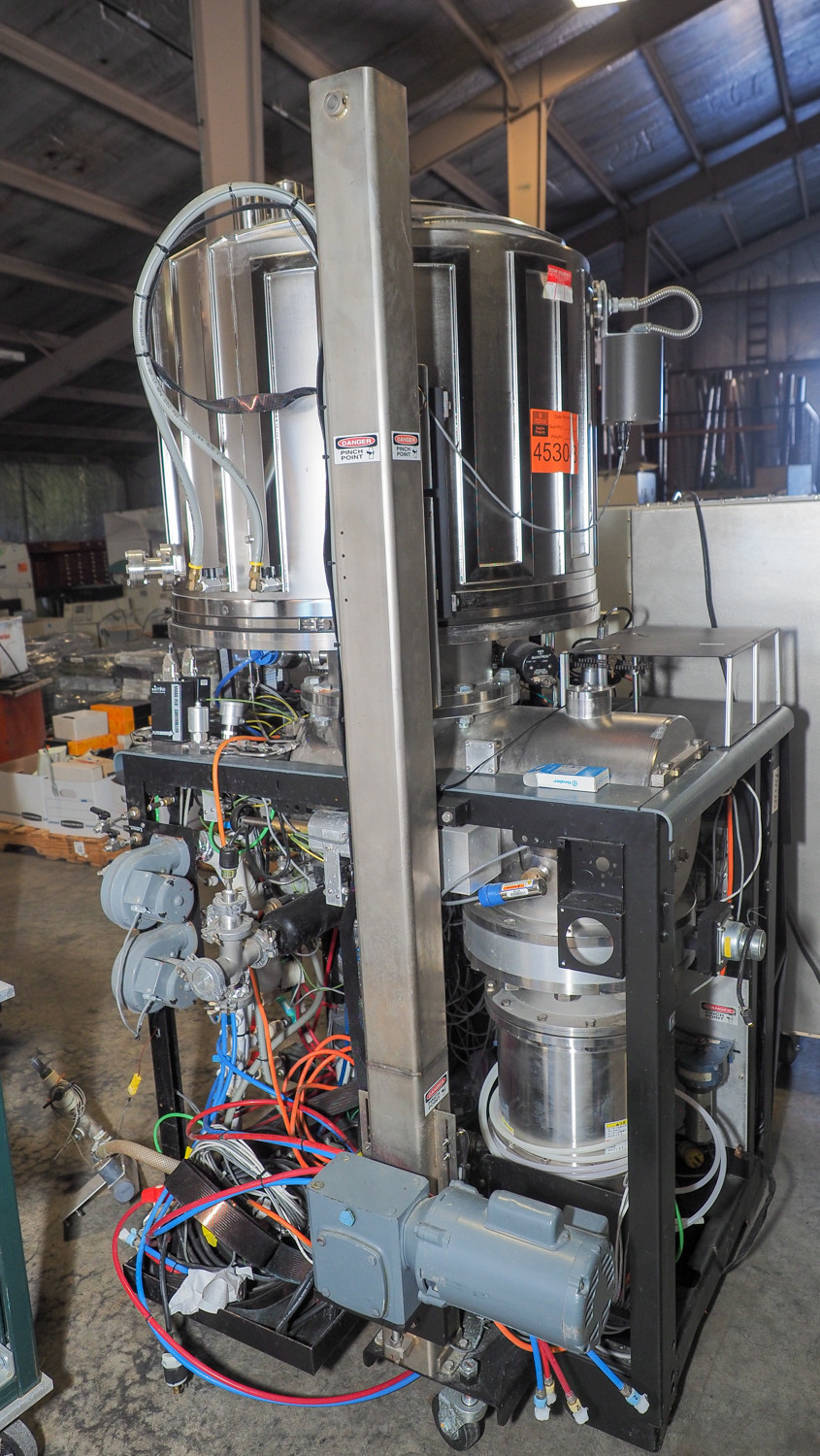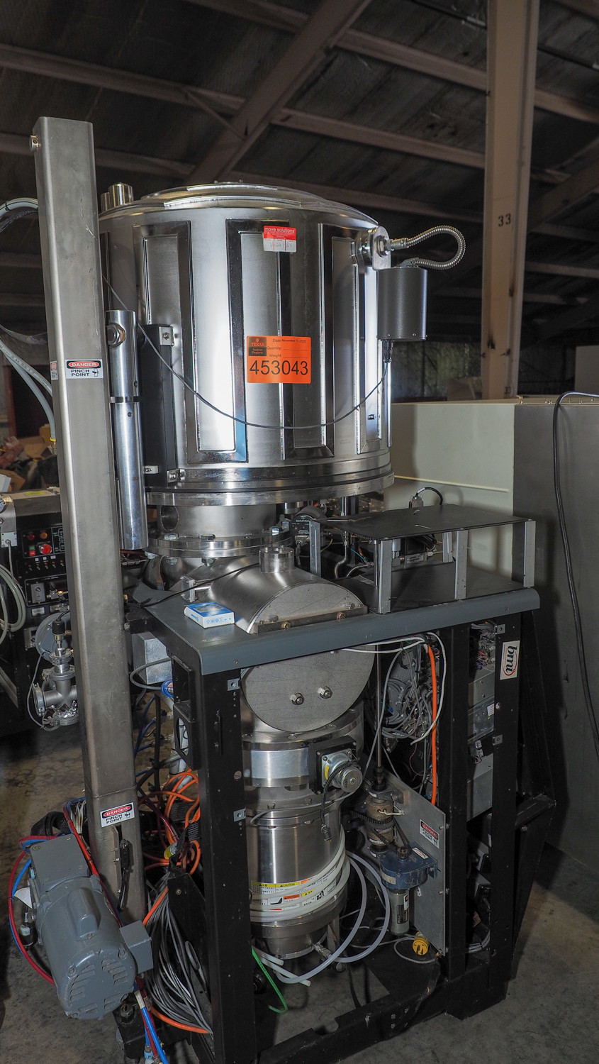 Custom lab system on steel rolling framework; includes stainless steel chambers, electric gear motors, control valves, blowers, and electronic controls; overall approx. 43" x 48" x 83". *The University of Texas at Austin makes no claim of physical or mechanical condition, and functionality of items available through SWICO Auctions. All items are sold “As is, where is”. It is the sole responsibility of the bidder to physically inspect items before bidding and assume all risk. Photos and descriptions are for preview only. All sales are final and no refunds will be issued. Please refer to the SWICO “Terms of Service” in which you have agreed to.