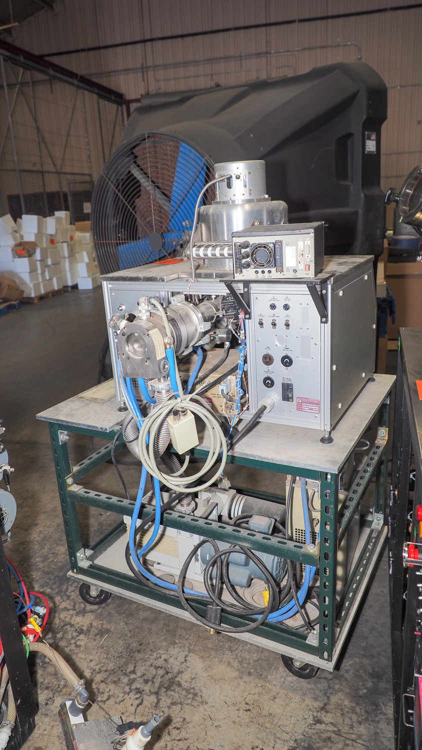 Oxford Instruments reactive ion etch system, BatchTop VII, on metal rolling base; approx. 43" x 33" x 65" overall; configured for plasma etching of wafers or samples. *The University of Texas at Austin makes no claim of physical or mechanical condition, and functionality of items available through SWICO Auctions. All items are sold “As is, where is”. It is the sole responsibility of the bidder to physically inspect items before bidding and assume all risk. Photos and descriptions are for preview only. All sales are final and no refunds will be issued. Please refer to the SWICO “Terms of Service” in which you have agreed to.