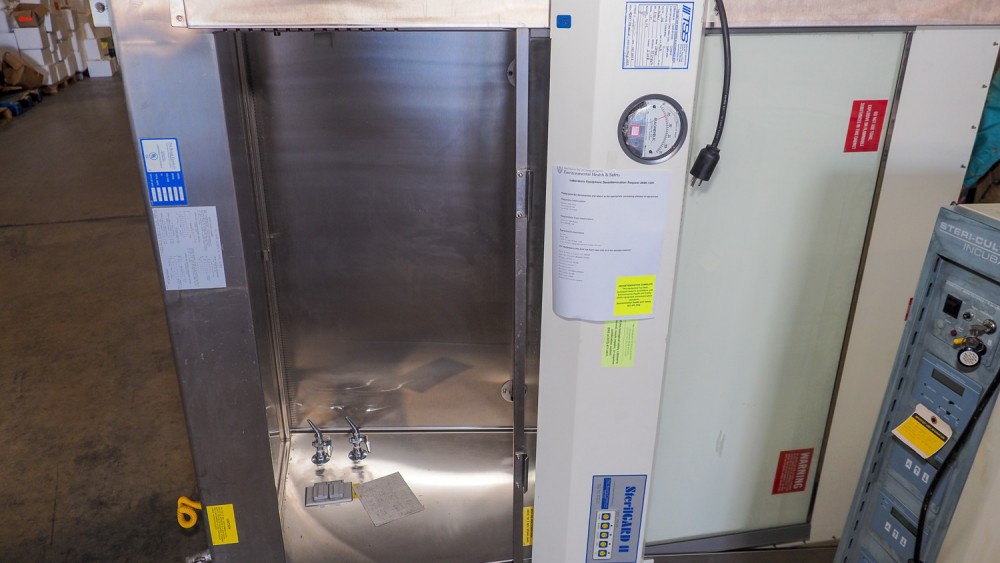 Baker Company SG-400 Class II biosafety cabinet; approx. 52" x 31" x 65" overall; includes front sash and internal work area; wood dollies not included. Condition:Condition is unknown *The University of Texas at Austin makes no claim of physical or mechanical condition, and functionality of items available through SWICO Auctions. All items are sold “As is, where is”. It is the sole responsibility of the bidder to physically inspect items before bidding and assume all risk. Photos and descriptions are for preview only. All sales are final and no refunds will be issued. Please refer to the SWICO “Terms of Service” in which you have agreed to.