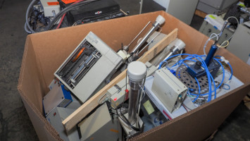 Box of electronics including IBM dot-matrix printer, Gilson model 121 fluorometer, CS Bio peptide synthesizer components, Telodyne model 260 syringe pump, and additional electronic modules and power supplies. Condition:Condition is unknown *The University of Texas at Austin makes no claim of physical or mechanical condition, and functionality of items available through SWICO Auctions. All items are sold “As is, where is”. It is the sole responsibility of the bidder to physically inspect items before bidding and assume all risk. Photos and descriptions are for preview only. All sales are final and no refunds will be issued. Please refer to the SWICO “Terms of Service” in which you have agreed to.