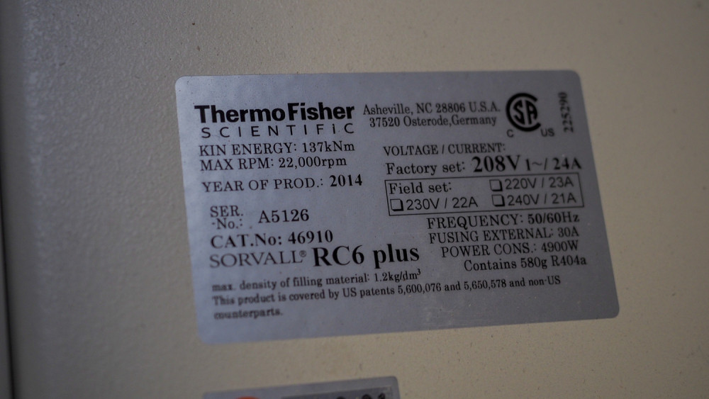 Two Sorvall floor-model refrigerated centrifuges: one Sorvall RC6 Plus and one Sorvall RC6; includes rotors as present; suitable for high-speed tube or bottle centrifugation. *The University of Texas at Austin makes no claim of physical or mechanical condition, and functionality of items available through SWICO Auctions. All items are sold “As is, where is”. It is the sole responsibility of the bidder to physically inspect items before bidding and assume all risk. Photos and descriptions are for preview only. All sales are final and no refunds will be issued. Please refer to the SWICO “Terms of Service” in which you have agreed to.