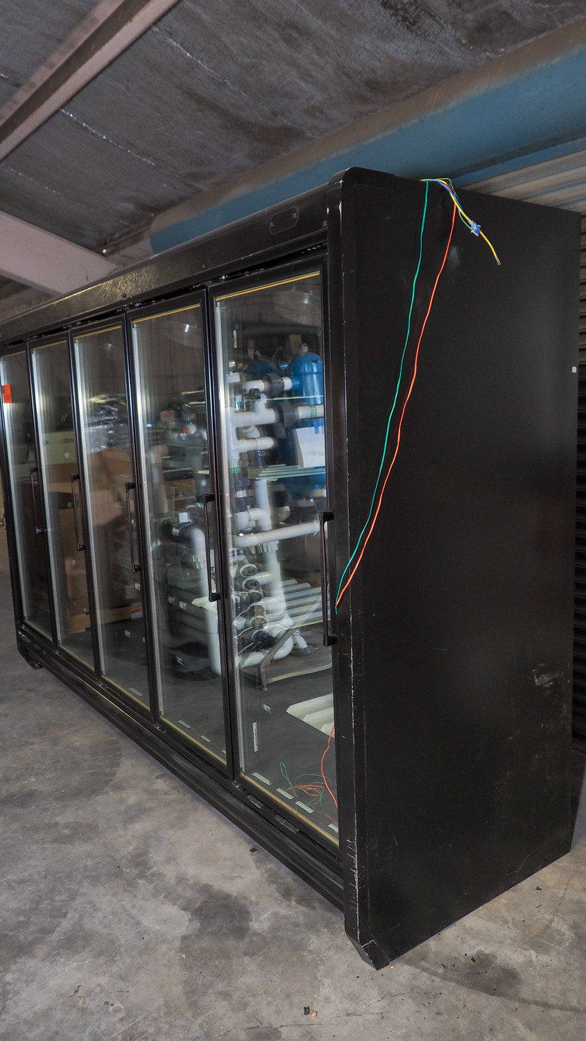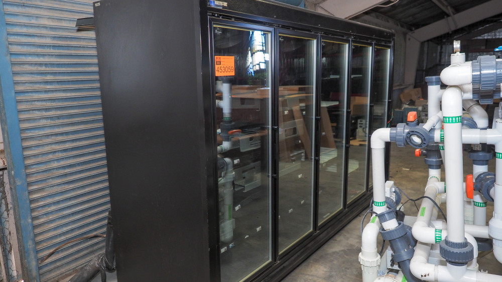 Master-Bilt multi-door glass-front refrigerated display cooler; approx. 10'6" wide x 37" deep x 81" tall; configured for use with remote refrigeration system (compressor/condenser not included). Condition:Refrigeration system is not included *The University of Texas at Austin makes no claim of physical or mechanical condition, and functionality of items available through SWICO Auctions. All items are sold “As is, where is”. It is the sole responsibility of the bidder to physically inspect items before bidding and assume all risk. Photos and descriptions are for preview only. All sales are final and no refunds will be issued. Please refer to the SWICO “Terms of Service” in which you have agreed to.