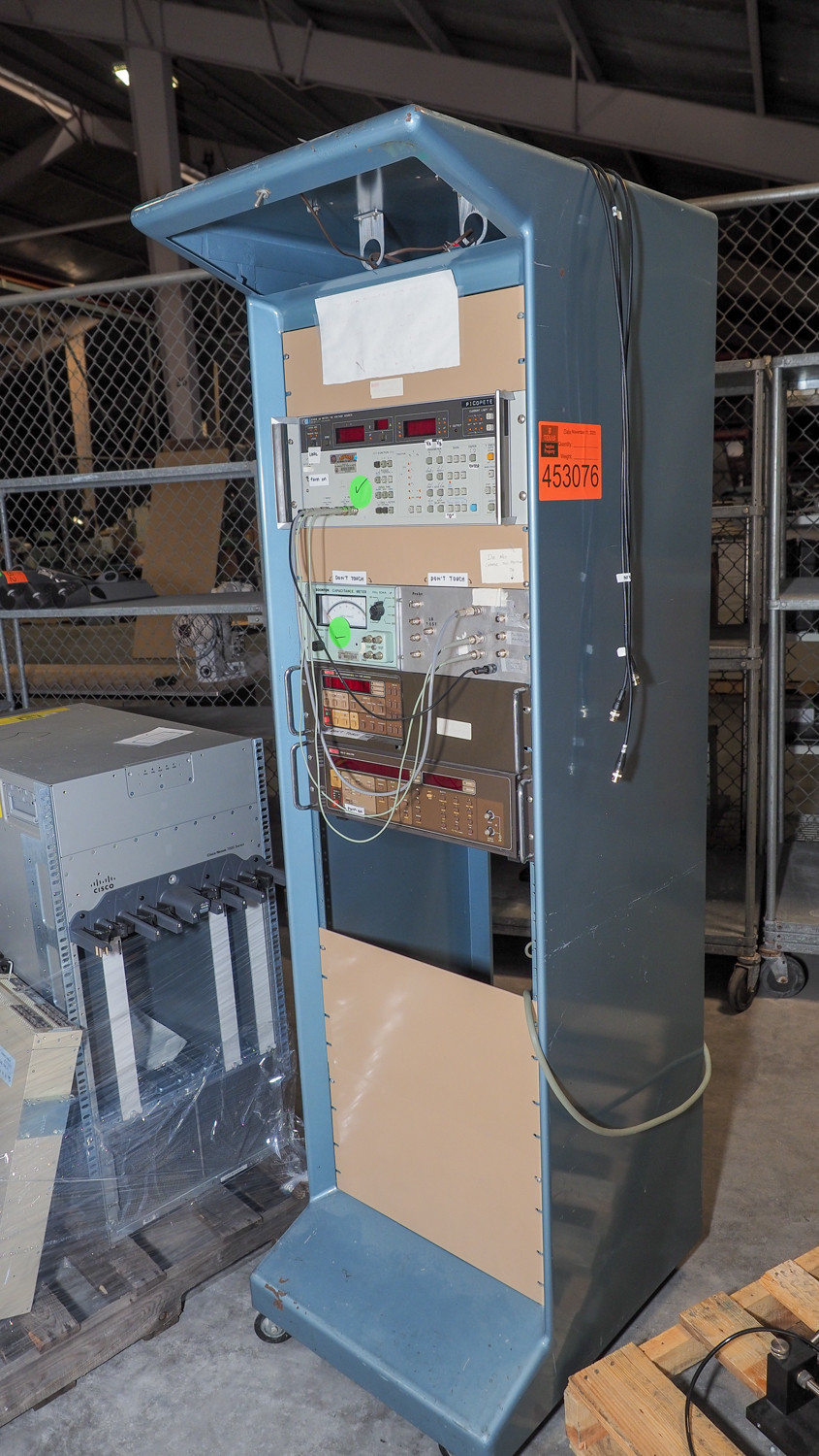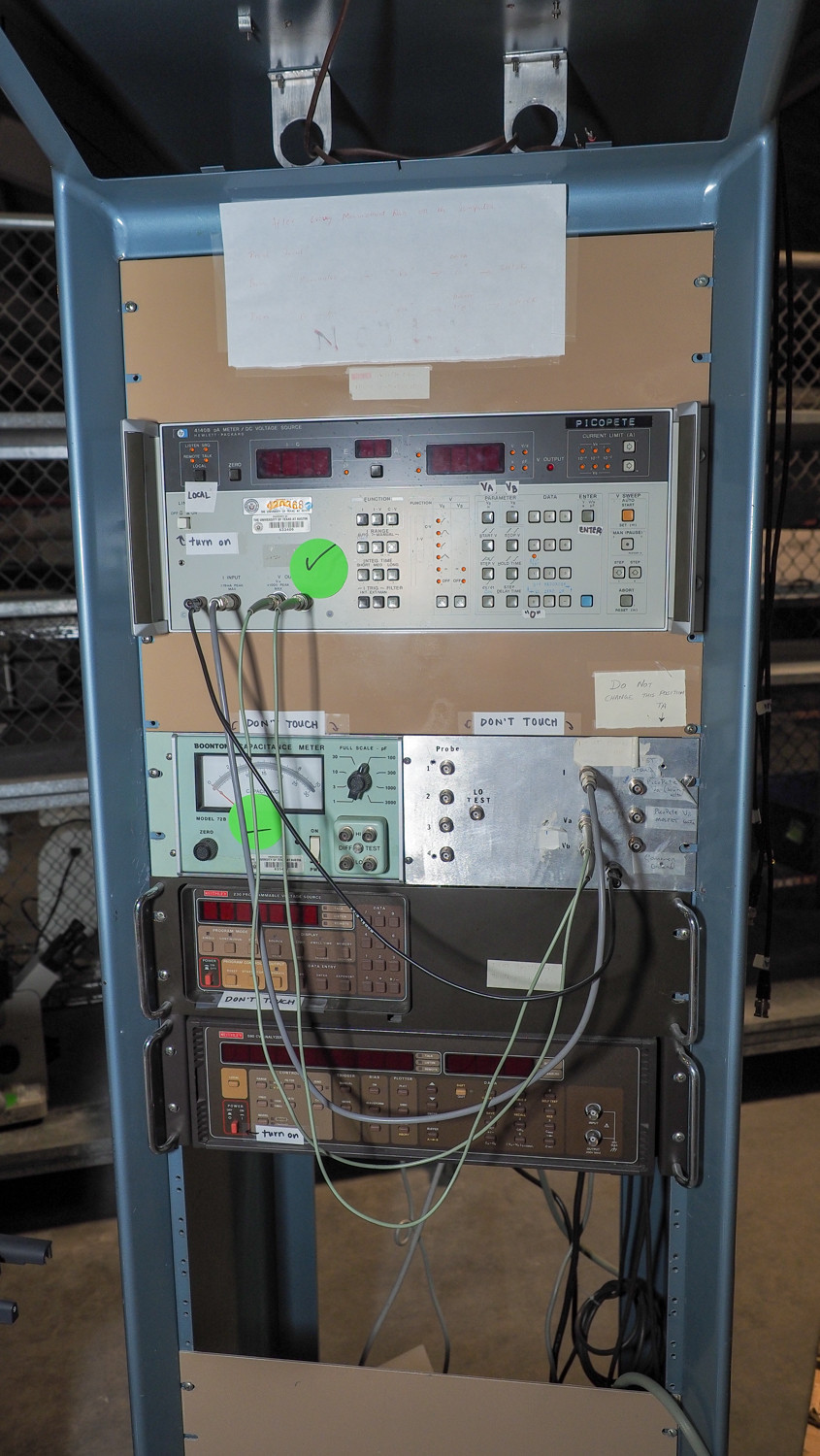 Rolling instrumentation rack including HP 4140B DC voltage source, Boonton capacitance meter, Keithley 230 programmable voltage source, and Keithley 590 CV analyzer, plus associated cabling. Condition:Condition is unknown *The University of Texas at Austin makes no claim of physical or mechanical condition, and functionality of items available through SWICO Auctions. All items are sold “As is, where is”. It is the sole responsibility of the bidder to physically inspect items before bidding and assume all risk. Photos and descriptions are for preview only. All sales are final and no refunds will be issued. Please refer to the SWICO “Terms of Service” in which you have agreed to.