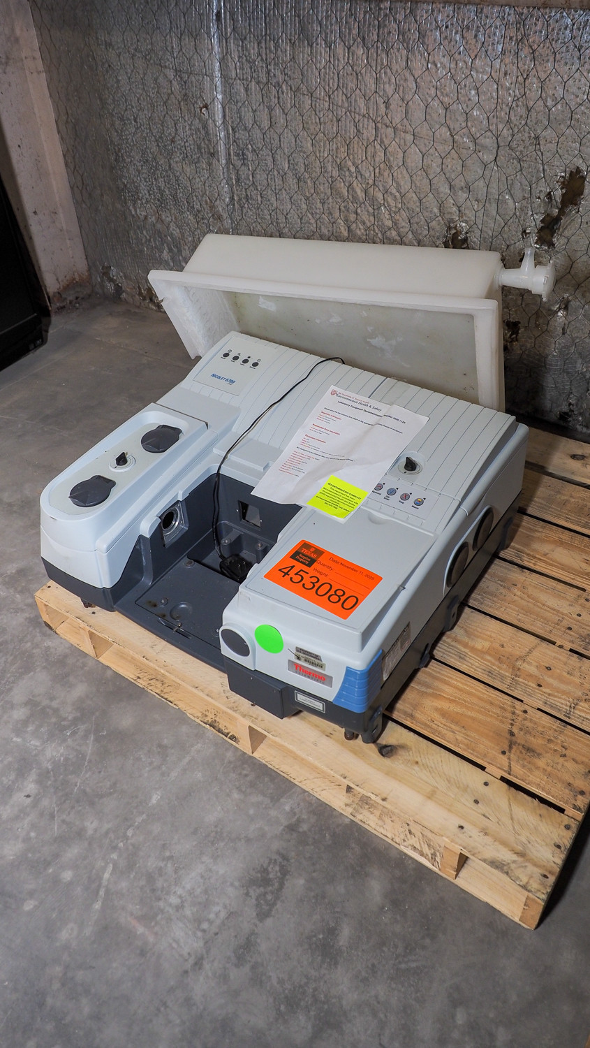 Thermo Scientific Nicolet 6700 FT-IR spectrometer, research-grade Fourier transform infrared system for mid-IR analysis of materials and chemical samples; fully upgradeable platform with multiple sampling options (per product line). Condition:Condition is unknown *The University of Texas at Austin makes no claim of physical or mechanical condition, and functionality of items available through SWICO Auctions. All items are sold “As is, where is”. It is the sole responsibility of the bidder to physically inspect items before bidding and assume all risk. Photos and descriptions are for preview only. All sales are final and no refunds will be issued. Please refer to the SWICO “Terms of Service” in which you have agreed to.