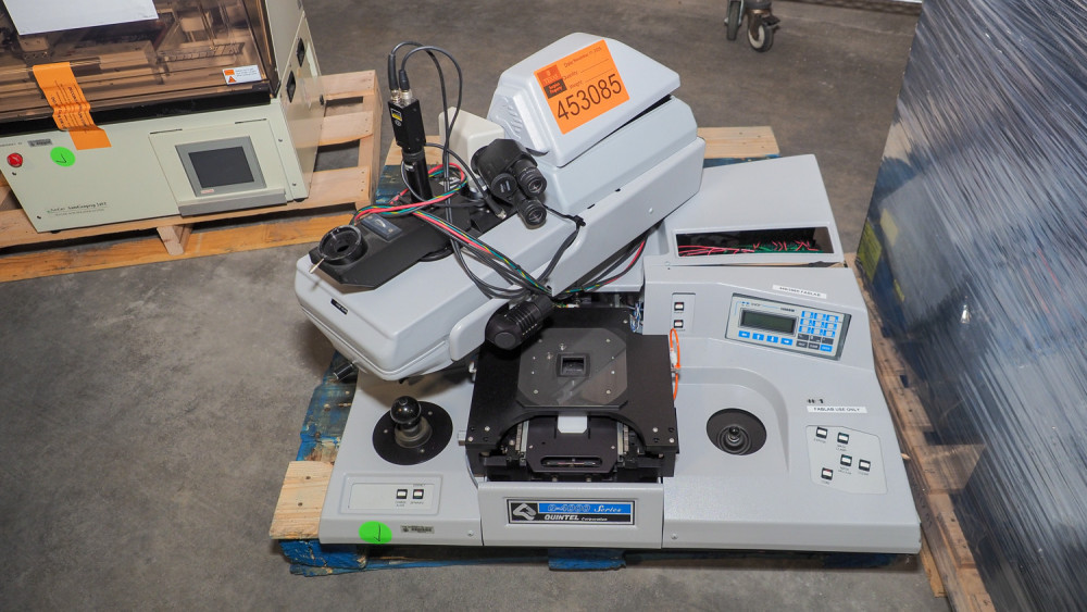 Quintel Q-4000 mask aligner for semiconductor or microfabrication lithography; optical alignment tool used to expose photoresist-coated wafers through photomasks. Condition:Condition is unknown *The University of Texas at Austin makes no claim of physical or mechanical condition, and functionality of items available through SWICO Auctions. All items are sold “As is, where is”. It is the sole responsibility of the bidder to physically inspect items before bidding and assume all risk. Photos and descriptions are for preview only. All sales are final and no refunds will be issued. Please refer to the SWICO “Terms of Service” in which you have agreed to.