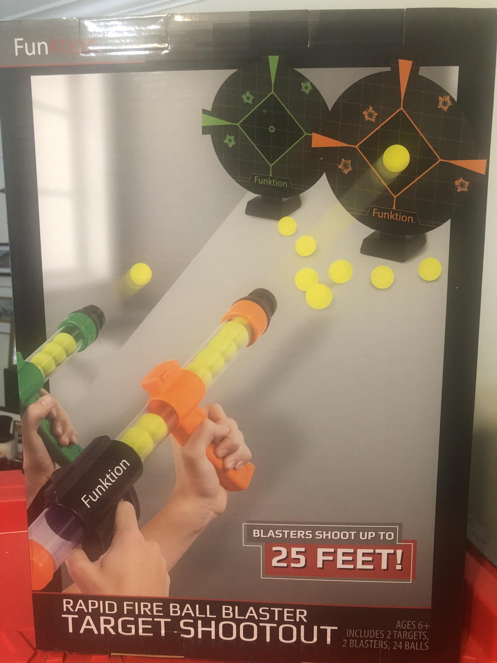 New, inbox, Rapid Fire Ball Blaster Target Shootout. Includes 2 targets, 2 blasters, 24 balls and shoots up to 25 feet.