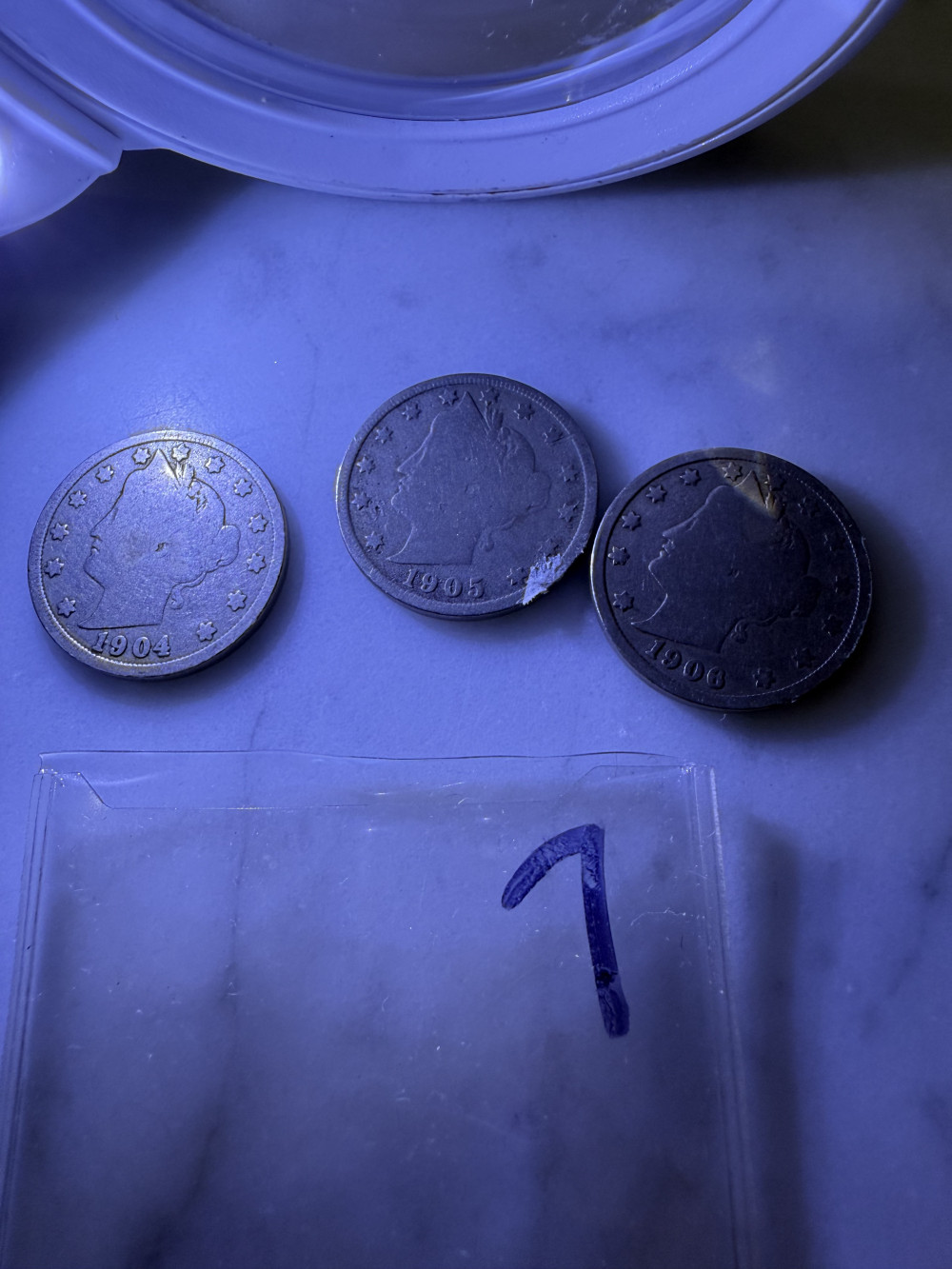 3 V. Nickels. 7 Coins & Currency