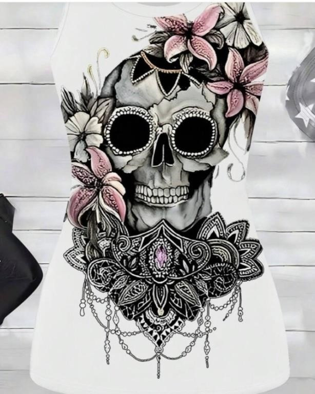 Summer Sleeveless Skull Pattern Punk Style Women's Top Graphic Tees Women Tops Size XL Great Deals and Steal