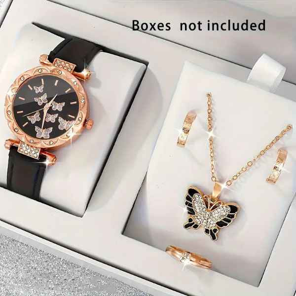 Shiny Rhinestone Butterfly Quartz Watch and Jewelry Set