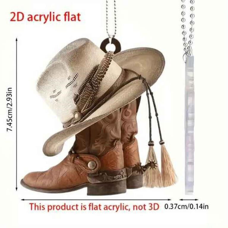 2D Acrylic Decorative Pendant - White Hat Boot Car Accessories for Interior Rearview Mirror, Bag & Key Chain Great Deals and Steal