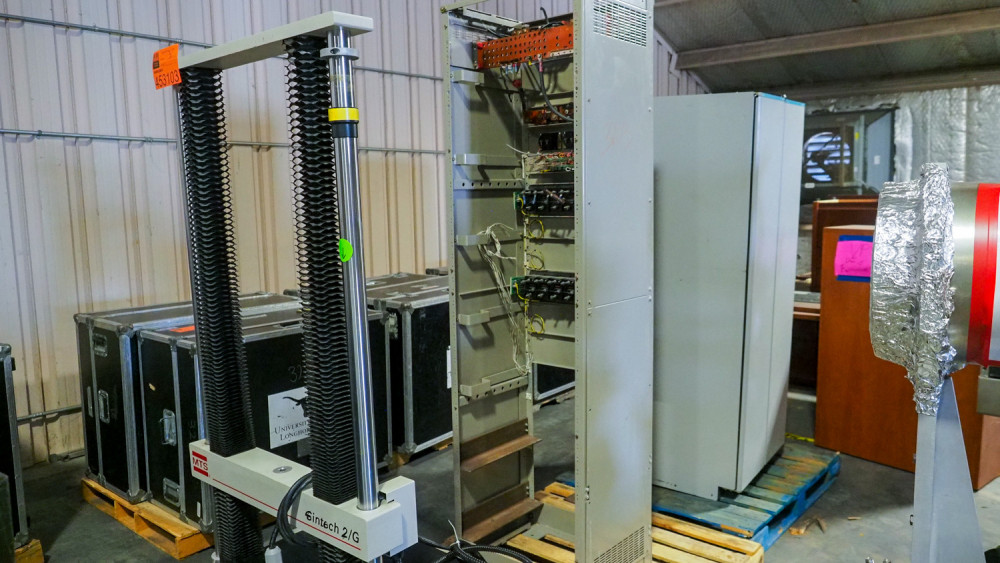 Includes MTS Sintech 2/G press, rack-mounted power supply system, and Northern Telecom DMS-100 rack unit. Condition:Condition unknown. *The University of Texas at Austin makes no claim of physical or mechanical condition, and functionality of items available through SWICO Auctions. All items are sold “As is, where is”. It is the sole responsibility of the bidder to physically inspect items before bidding and assume all risk. Photos and descriptions are for preview only. All sales are final and no refunds will be issued. Please refer to the SWICO “Terms of Service” in which you have agreed to.