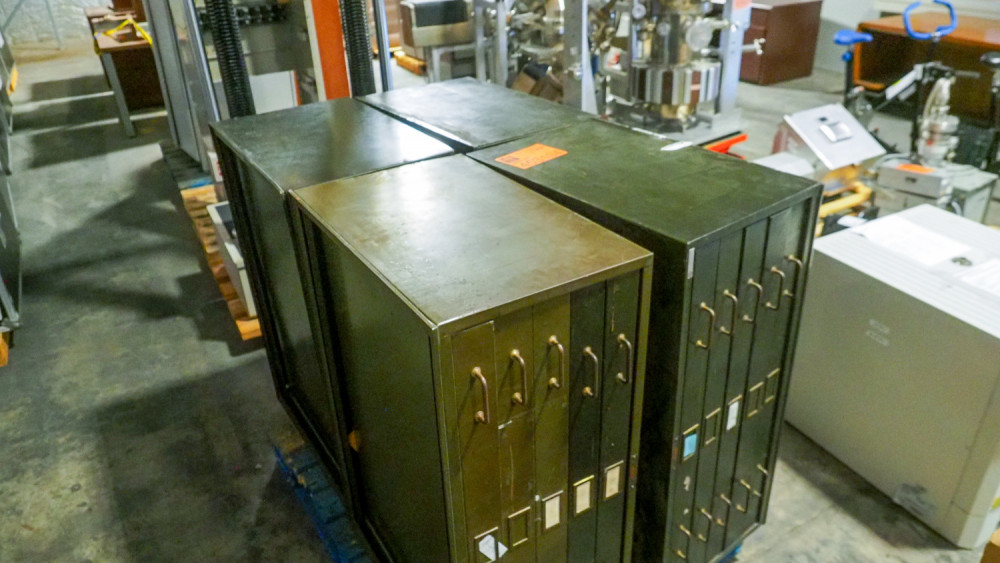Each section has 5 drawers; measures 40x27x17". *The University of Texas at Austin makes no claim of physical or mechanical condition, and functionality of items available through SWICO Auctions. All items are sold “As is, where is”. It is the sole responsibility of the bidder to physically inspect items before bidding and assume all risk. Photos and descriptions are for preview only. All sales are final and no refunds will be issued. Please refer to the SWICO “Terms of Service” in which you have agreed to.