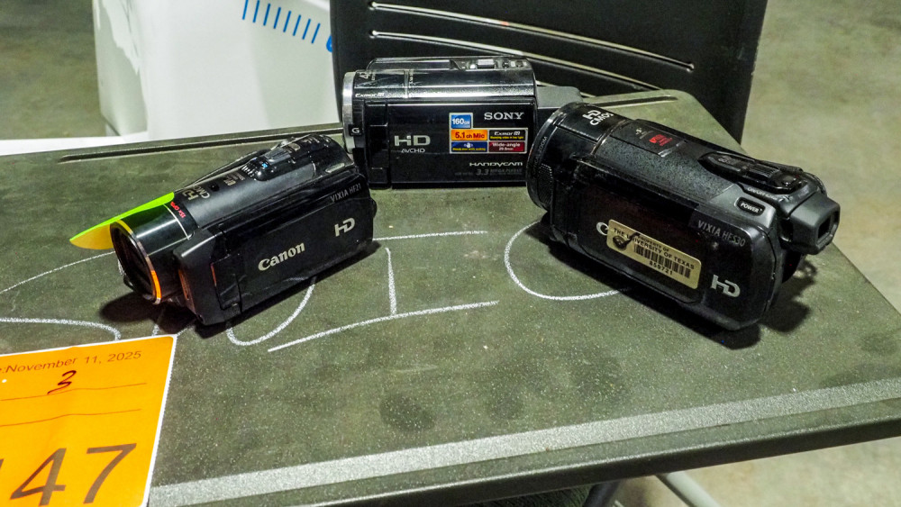 Includes Sony Handycam 3.3MP, Canon Vixia HF21, and Canon Vixia HFS30. Condition:Condition unknown. *The University of Texas at Austin makes no claim of physical or mechanical condition, and functionality of items available through SWICO Auctions. All items are sold “As is, where is”. It is the sole responsibility of the bidder to physically inspect items before bidding and assume all risk. Photos and descriptions are for preview only. All sales are final and no refunds will be issued. Please refer to the SWICO “Terms of Service” in which you have agreed to.