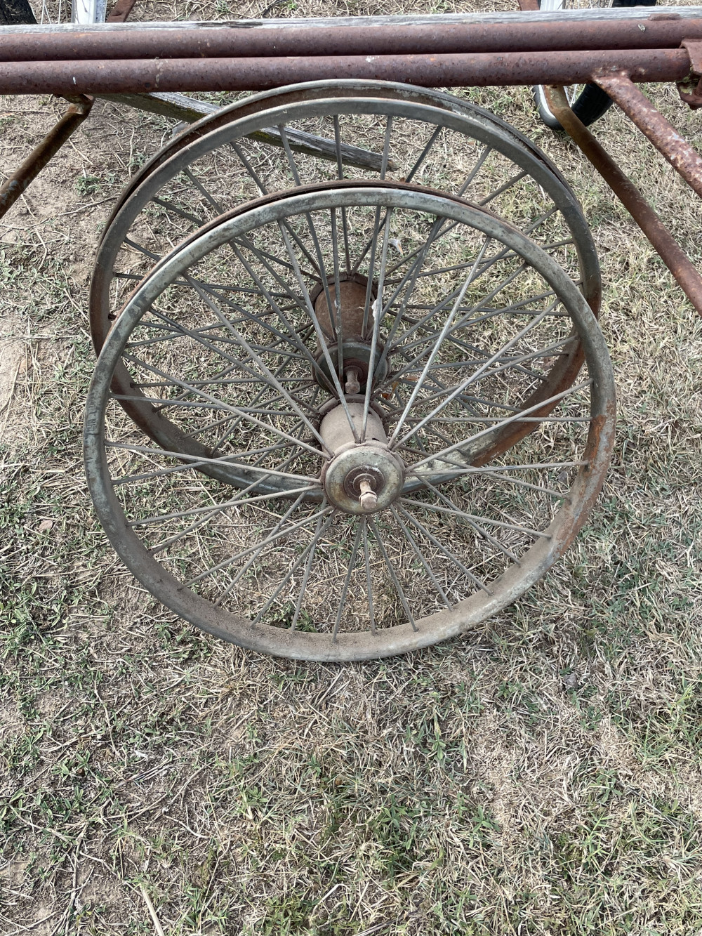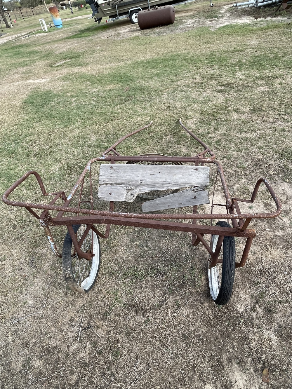 2 Wheel Pony Gig - needs restoring - has 2 heavy-duty rims for it - never got to finish the project