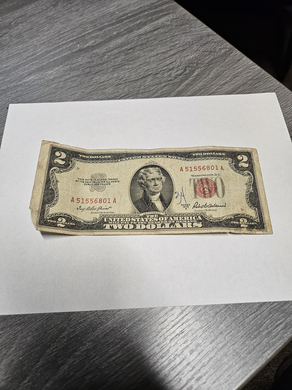 1953 A Two Dollar Red Seal Note 801A Coins & Currency