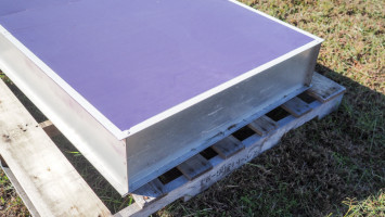 Sign measures 36 inches x32 ftx 8 inches thick. Made of Aluminum