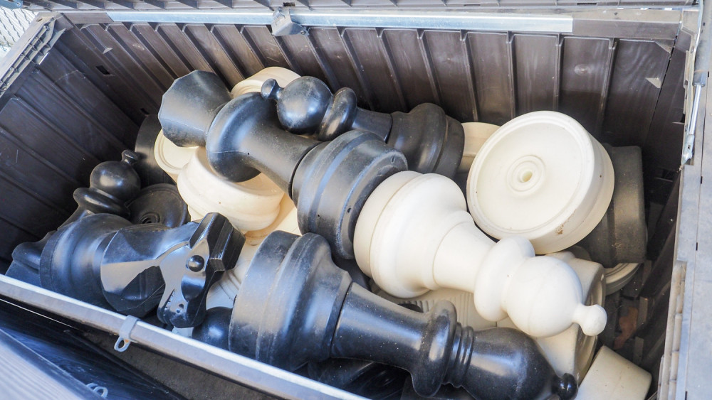 Backyard chess set and 4 outdoor storage boxes (#20) College Station Isd
