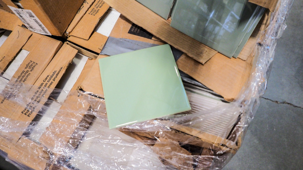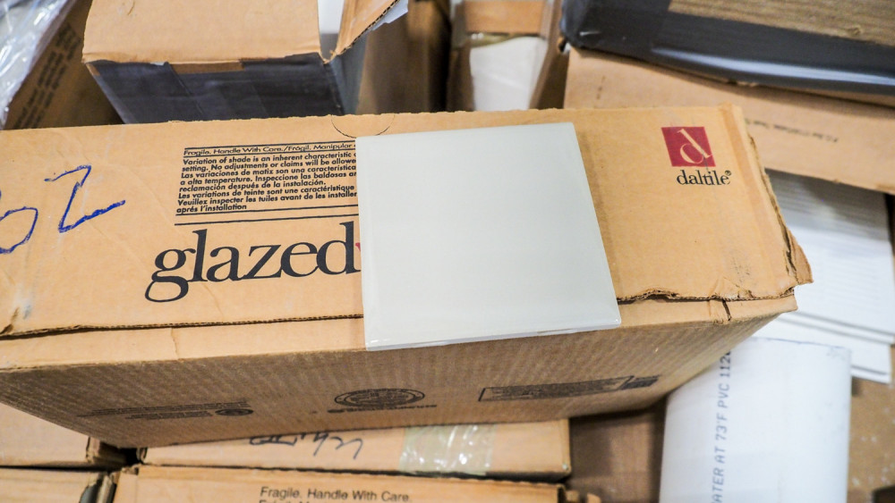 Ceramic tiles. Includes 1 x 1 up to 6 x 6 inch tiles. Various styles and colors.